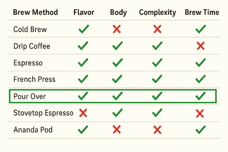 A favorite for showcasing delicate flavors, pour over is a manual method that gives you full control over extraction.